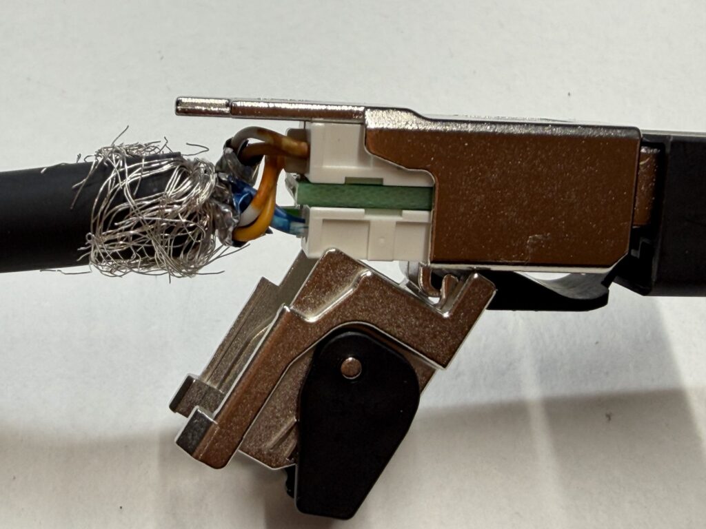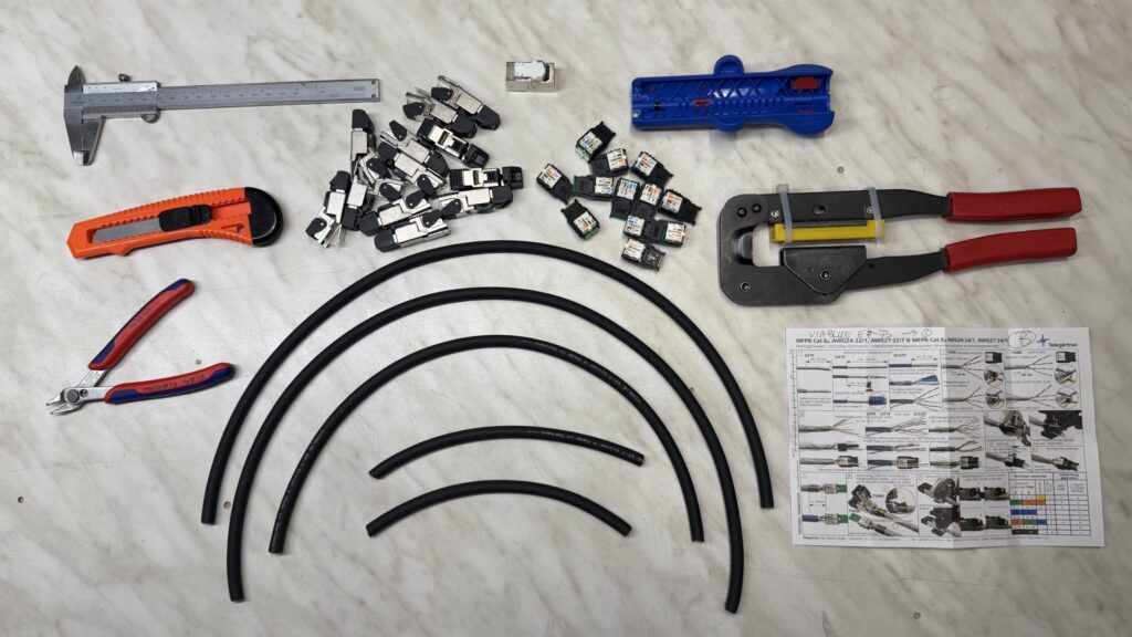 but NOT costing an arm and a leg! It should be top quality and affordable. I decided to use a quality cable from ViaBlue, the EP-7 Cat7. Tight silver shielding and very flexible as a whole. I needed 6 cables to connect the whole setup and spent a couple of hours on it. Those were well spent! For connectors, only Telegärtner are allowed through the door.